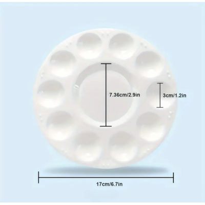 La paleta de plástico redonda es un práctico y versátil accesorio para artistas. Fabricada con plástico de alta calidad, esta paleta es duradera y resistente. Con un diámetro de aproximadamente 17 cm, ofrece espacio suficiente para mezclar colores y pintura. Su diseño ergonómico y ligero la hace cómoda de usar durante largas sesiones de pintura. Además, su color blanco permite una mejor visualización y contraste de los colores. Ideal para artistas aficionados y profesionales, esta paleta es un imprescindible en cualquier estudio de arte.