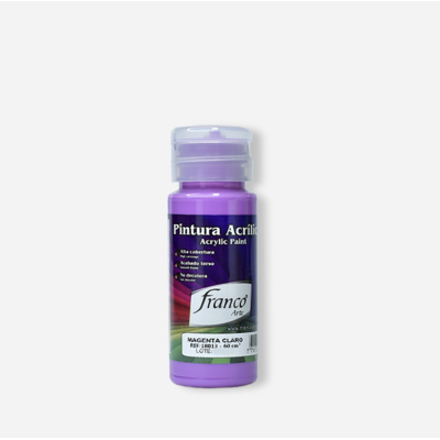 La pintura acrílica "Magenta Claro" de la marca "Franco" es un producto de calidad excepcional para artistas y entusiastas de las bellas artes. Con un tono vibrante y luminoso, esta pintura brinda una cobertura suave y uniforme en cualquier superficie. Gracias a su consistencia cremosa, es fácil de aplicar y se seca rápidamente, permitiendo a los artistas trabajar de manera rápida y eficiente. Ideal para proyectos artísticos en lienzo, papel, madera y otros materiales, la pintura acrílica "Magenta Claro" de "Franco" es una excelente opción para explorar la creatividad en cualquier proyecto artístico.